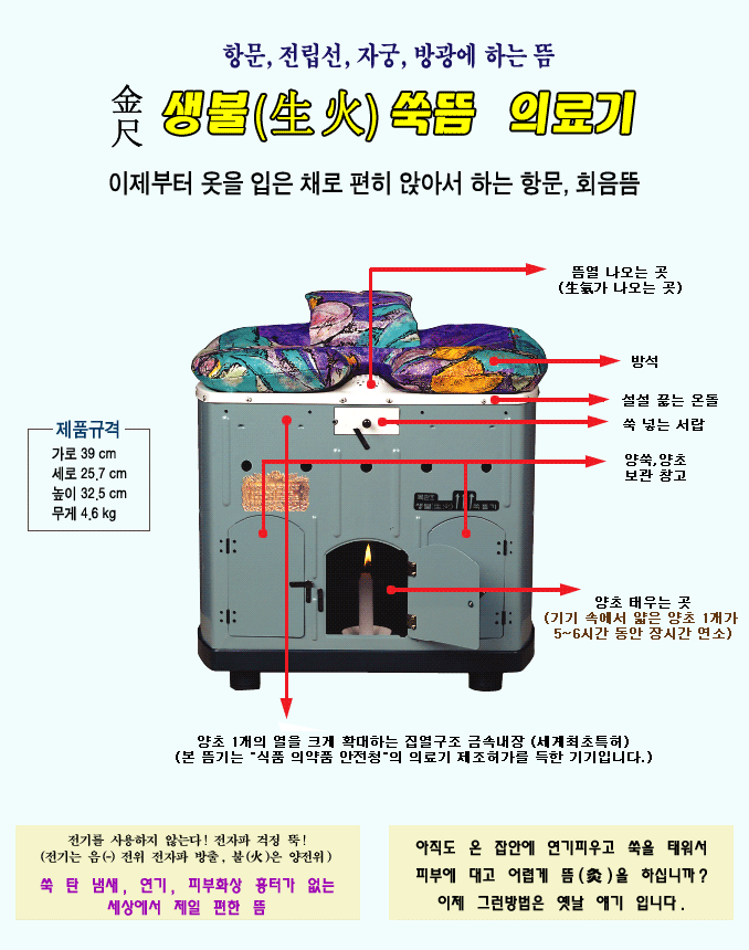 당사의 뜸 의료기 “쑥 넣는 서랍”에는 물은 넣지말고 사용 하십시오.