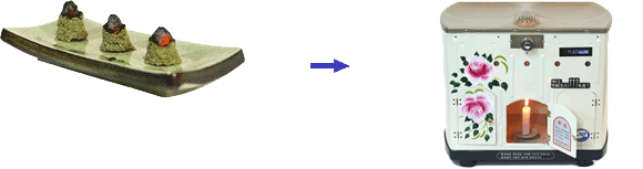 기기 내부에 천연의 열을 얻기 위한 양초의 적은 열을 내장된 집열판에서 고열을 만든 후 만들어진 고열이 약쑥의 성분을 열 추출하여 뿜어져 나오게 한 방식입니다.