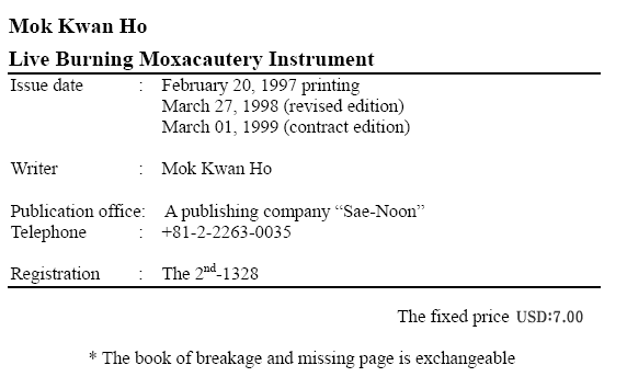 Especially, avoid taking the raw stuff, cold food, and, cold water. - The anus and perineum cauterizing should be cauterized on the right place, which is the hole of heat energy from the moxacautery instrument.
